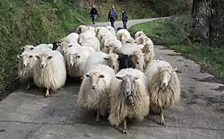 The Latxa (Basque pronunciation: [latʃa]; Spanish: Lacho/Lacha) is a breed of domestic sheep native to the Basque Country of Spain. Mostly contained within the provinces of Biscay, Gipuzkoa and Navarre, Latxa are dairy sheep whose unpasteurized milk is used to produce Idiazábal and Roncal cheeses. There are two sub-types of the breed, a dark-faced and a blonde.
