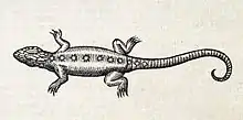 - Linnaeus (1758). Systema naturæ per regna tria naturæ, secundum classes, ordines, genera, species, cum characteribus, differentiis, synonymis, locis. Tomus I. Editio Decima, Reformata. Stockholm: L. Salvius. 824 pp. (Lacerta stellio, new species, p. 202). (in Latin).