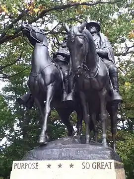 Although recognized principally for her medallic contributions,[3] Laura won outstanding commissions for heroic-size sculpture. Of these, the most notable was her winning the competition for a double equestrian statue of Generals Robert E. Lee and Stonewall Jackson in Baltimore. The competition was held in 1936 and six eminent American sculptors, Lee Lawrie, Paul Manship, Edward McCartan, Hans Schuler, Frederick William Sievers and Laura Fraser were invited to submit designs.[4] Fraser was the only woman sculptor invited to enter the competition.[5] Her work was also part of the art competitions at the 1928 Summer Olympics and the 1932 Summer Olympics.[6]