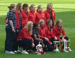 In 2011, Harvey was named FAWSL coach of the year after guiding the team to win the league title, FA Cup, and Continental Cup.[14] She finished her tenure with Arsenal in 2012 having led the team to three consecutive league titles, two Continental Cups, and one FA Women's Cup.[11][15][16]