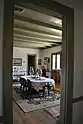 Shaded by the low branches of large oak trees, the main house is almost hidden from the road. Constructed in 1804–1805, the "big house" at Laura Plantation has a raised brick basement story and a briquette-entre-poteaux (brick between posts) upper floor.[2] Much of the house was pre-fabricated, as its wooden beams were pre-cut off-site and arrived ready to be installed.[6] It is one of only 30 substantial Créole raised houses in the state. Also noteworthy are the Federal-style interior woodwork and Norman roof truss, unusual for later Créole houses.[2]