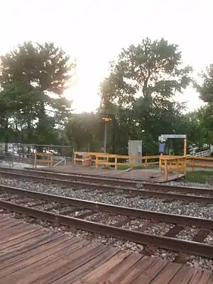 ![]() The Laurel Race Track station's Washington-bound platform as seen from the Camden Station-bound platform in July 2012. | |||||||||||||