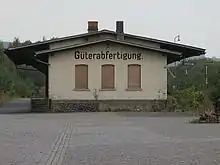 The buildings of the station are listed as a cultural monument under the Hessian Monument Protection Act (Hessischer Denkmalschutzgesetz).[5] The pedestrian over bridge north-west of the railway, a rivet iron structure, was also under monument protection. It was extended during the extension of the track layout around 1905 and was mainly used for pedestrians from Maar.[4] On 28 November 2008, it was demolished by Deutsche Bahn without consulting the State Office for the Preservation of Monuments (Landesamt für Denkmalpflege) and the town of Lauterbach.[6]