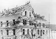 In 1913 a wooden hut was built between the signal box and the track supervisor's office (Bahnmeisterei). A year later, at the outbreak of the First World War, the military authorities operated troop trains over the line every 90 minutes. It was said that a lavatory with a capacity for 100 people had been built behind the hut for this operation.[13]