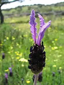 Lavandula pedunculata, commonly called French lavender,[2] is a species of flowering plant in the family Lamiaceae. It is known for its butterfly-like, narrow petals that emerge from the top of its narrow stalk. L. pedunculata is native to Iberia, Morocco and western Turkey.[2]