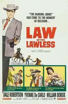 Law of the Lawless is a 1964 American Techniscope Western film directed by William F. Claxton, produced by A.C. Lyles, and starring Dale Robertson, Yvonne de Carlo and William Bendix. The supporting cast features Lon Chaney Jr., Kent Taylor, Barton MacLane, John Agar, Richard Arlen, Bruce Cabot and Don "Red" Barry.