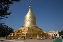 Lawkananda Pagoda (Burmese: လောကနန္ဒာစေတီ; pronounced [lɔ́ka̰nàɰ̃da̰ zèdì]; also spelt Lokananda, literally "joy of the world") is a Buddhist stupa located in Bagan, Burma (formerly Pagan).[1] It was erected on the bank of the Ayeyarwaddy River, and built during the reign of King Anawrahta. It contains a replica of a Buddha tooth relic. The Lawkananda Pagoda festival along with local foodand handicrafts is celebrated in the month of July every year. Since it takes place in the rainy season, very few outside visitors are able to attend the festival.[2] On 24 May 2003, a bejewelled umbrella (hti) was hoisted to the top of the pagoda.