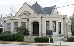 Lawtonville Baptist Church is a historic Baptist church located at Estill, Hampton County, South Carolina. It was built in 1911, and is a brick building with a complex pavilion roof. It features projecting gables, stained glass windows, and a rear entrance that resembles a castle keep in the Late Gothic Revival style. In 1945, the congregation added a Sunday School building to the east of the original church building, and a music building was added in 1962. The church was renovated in 1973.[2][3]
