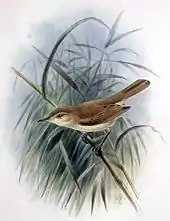 The Laysan millerbird (Acrocephalus familiaris familiaris) was a subspecies of the millerbird, similar in appearance to the remaining subspecies, the Nihoa millerbird. Its dorsal side was brown, and its belly was grayish. Its name derives from its favorite food, several species of moths of the genus Agrotis (such as the endemic and likewise extinct Agrotis laysanensis) commonly referred to as "millers" (Butler & Usinger, 1963).
