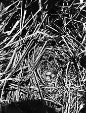 On Laysan, courtship and the start of nest-building was in April, with eggs being laid from May to June and the height of the nesting season taking place in June and July; there is a report of recently hatched young birds from Midway in March, but this seems to be unusually early. On Laysan, nests were built in tussocks of endemic Cyperus pennatiformis subsp. bryanii, kāwelu (Eragrostis variabilis) and introduced Bermuda grass (Cynodon dactylon) around the lagoon, while on Midway, it nested in any shelter that seemed convenient, such as naupaka kahakai (Scaevola taccada ) thickets and pōhuehue (Ipomoea pes-caprae subsp. brasiliensis) stands. The nests were placed on the ground or inside the base of a tussock; in the latter case the birds would rearrange the dried dead leaves to form a roofed cavity reached through a small tunnel some 15 centimetres (5.9 in) long. Nests were lined with soft dried plant material and down of seabirds.