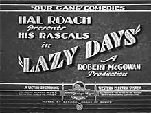 Lazy Days is a 1929 Our Gang short comedy film directed by Robert F. McGowan.[2][3] Produced by Hal Roach and released to theaters by Metro-Goldwyn-Mayer, it was the 89th Our Gang short to be released.