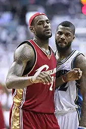 James grew up playing basketball for St. Vincent–St. Mary High School in his hometown of Akron, Ohio. He was heavily touted by the national media as a future NBA superstar. A prep-to-pro, he was selected by the Cleveland Cavaliers with the first overall pick of the 2003 NBA draft. Named the 2004 NBA Rookie of the Year,[6] he soon established himself as one of the league's premier players, leading the Cavaliers to their first NBA Finals appearance in 2007 and winning the NBA MVP award in 2009 and 2010.[4] After failing to win a championship with Cleveland, James left in 2010 as a free agent to join the Miami Heat;[7] this was announced in a nationally televised special titled The Decision and is among the most controversial free agency moves in sports history.[8]