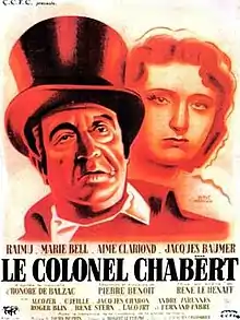 Colonel Chabert (French: Le colonel Chabert) is a 1943 French drama film directed by René Le Hénaff, starring Raimu, Marie Bell, Aimé Clariond and Jacques Baumer. It tells the story of a French officer who is assumed dead during the Napoleonic Wars, but returns ten years later to a very different France, both on a political and personal level. The film is based on the novel Colonel Chabert by Honoré de Balzac. James Travers has written, "This superlative adaptation of Balzac's great novel was one of a number of prestigious film productions made under the Occupation (1940–1944)."[1][2]