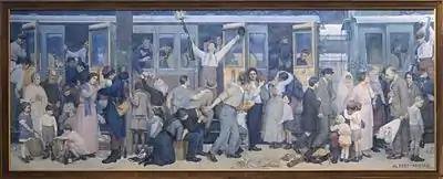 Le Départ des poilus, août 1914 (French: Departure of the Infantrymen, August 1914) is a monumental mural by the American artist Albert Herter. The painting measures 12 by 5 metres (39 ft × 16 ft) and is displayed at the Gare de l'Est railway station in Paris, where it is suspended some 7 metres (23 ft) high on a wall in the Hall d'Alsace.