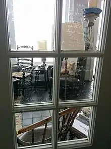 Visitors to the house were encouraged to sign the window panes with a diamond-tipped pen. As a result there are hundreds of signatures on the windows and french doors, many from prominent Canadians. Some of the names include humorist Stephen Leacock, artist Clarence Gagnon and Sir John Abbott.[6]