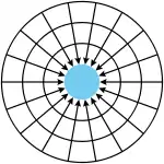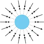 Fatio assumed that the universe is filled with minute particles, which are moving indiscriminately with very high speed and rectilinearly in all directions. To illustrate his thoughts he used the following example: Suppose an object C, on which an infinite small plane zz and a sphere centered about zz is drawn. Into this sphere Fatio placed the pyramid PzzQ, in which some particles are streaming in the direction of zz and also some particles, which were already reflected by C and therefore depart from zz. Fatio proposed that the mean velocity of the reflected particles is lower and therefore their momentum is weaker than that of the incident particles. The result is one stream, which pushes all bodies in the direction of zz. So on one hand the speed of the stream remains constant, but on the other hand at larger proximity to zz the density of the stream increases and therefore its intensity is proportional to 1/r2. And because one can draw an infinite number of such pyramids around C, the proportionality applies to the entire range around C.