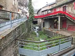The Tarn has been dammed there and electricity is generated by two Kaplan turbines producing 27 KW.[3]