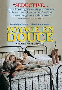 Le Voyage en douce is a 1980 French drama film directed by Michel Deville. The screenplay is shaped around 15 different sexual anecdotes, penned by 15 writers.[1] The film stars Dominique Sanda and Geraldine Chaplin. It was entered into the 30th Berlin International Film Festival.[2]