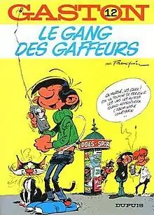 Le gang des gaffeurs, written and drawn by Franquin, is the twelfth album of the original Gaston Lagaffe series. It is composed of 46 strips previously published in Spirou. It was published in 1974 by Dupuis.