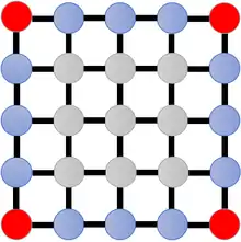 A typical algorithm to solve the leader election in an unoriented mesh is to only elect one of the four corner nodes as the leader. Since the corner nodes might not be aware of the state of other processes, the algorithm should first wake up the corner nodes. A leader can be elected as follows.[17]