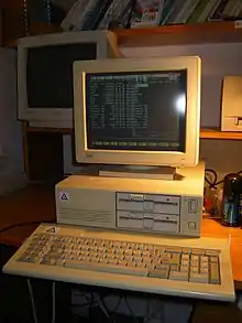 The Leading Edge Model D is an IBM clone first released by Leading Edge Hardware in July 1985. It was initially priced at $1,495 configured with dual 5.25" floppy drives, 256 KB of RAM, and a monochrome monitor. It was manufactured by South Korean conglomerate Daewoo and distributed by Canton, Massachusetts-based Leading Edge.[1] Engineer Stephen Kahng spent about four months designing the Model D[2] at a cost of $200,000.[3] Kahng later became CEO of Macintosh clone maker Power Computing.