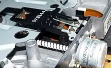 A leadscrew (or lead screw), also known as a power screw[1] or translation screw,[2] is a screw used as a linkage in a machine, to translate turning motion into linear motion. Because of the large area of sliding contact between their male and female members, screw threads have larger frictional energy losses compared to other linkages. They are not typically used to carry high power, but more for intermittent use in low power actuator and positioner mechanisms. Leadscrews are commonly used in linear actuators, machine slides (such as in machine tools), vises, presses, and jacks.[3] Leadscrews are a common component in electric linear actuators.