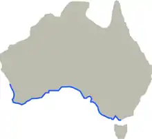 The leafy seadragon is found only in southern Australian waters, from Wilson’s Promontory in Victoria at the eastern end of its range, westward to Jurien Bay, 220 km (140 mi) north of Perth in Western Australia.[1][10] Individuals were once thought to have very restricted ranges; but further research has discovered that seadragons actually travel several hundred metres from their habitual locations, returning to the same spot using a strong sense of direction. They are mostly found over sand patches in waters up to 50 m (160 ft) deep, around kelp-covered rocks and clumps of sea grass.[3] They are commonly sighted by scuba divers near Adelaide in South Australia, especially at Rapid Bay, Edithburgh, and Victor Harbor.[11][12]