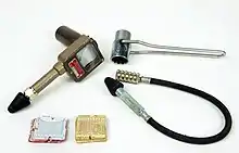 A leak-down tester is a measuring instrument used to determine the condition of internal combustion engines by introducing compressed air into the cylinder and measuring the rate at which it leaks out.
