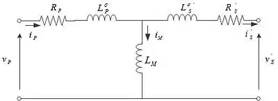 - LPσ & LSσ are primary & secondary leakage inductances, corresponding to primary & secondary leakage reactances XPσ & XSσ.