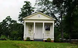 The Leake–Ingham Building is a historic commercial building in Camden, Arkansas. It is located behind the McCollum-Chidester House at 926 Washington Street NW, and is part of the Ouachita County Historical Society Museum. It is one of the oldest commercial buildings in Camden. The single-story Greek Revival structure was built c. 1850 by William Leake, a prominent Camden attorney, and has a distinctive Greek temple front. It was originally located on a prominent corner of the city, at Washington and Harrison Streets. Leake operated a law practice from the building until 1866 with various partners, after which it was used to house government offices, and later Camden's first library. Threatened with demolition in the 1950s, it was moved several times before its acquisition by the historical society.[2]