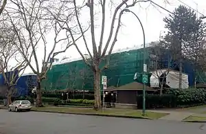 A rainscreen is the weather-facing surface of an exterior wall that stands off from the moisture-resistant surface of the main wall. There is a gap or cavity between the outermost layer, or rainscreen, and the main wall which prevents infiltration of moisture into the main wall assembly and allows air to circulate between.[37] By 1997 Vancouver and neighboring Richmond and New Westminster enacted requirements for this construction technology in residential construction.[38] (Masonry veneer walls typically have a similar type cavity but these are not limited to residential buildings). The Vancouver Building By-Law included this requirement in its 1996 edition and the BC Building Code in 2006 for coastal climates.[39][40] A 5-year scientific study on residential building envelopes in Vancouver was undertaken between 2001 and 2006. Its conclusions reported on the benefits of rainscreens in exterior wall assemblies.[41]