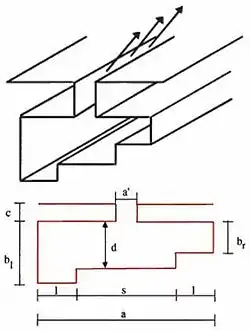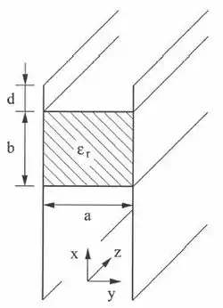 Groove guide (shown in Fig. 5) is a low-loss open waveguide for millimeter waves, somewhat similar to the NRD guide: the dielectric central region is replaced by an air region of larger width (greater than λ0/2). The field again decays exponentially in the regions of narrower width above and below. The leaky-wave antenna is created by first bisecting the groove guide horizontally. It also resembles a stub-loaded rectangular waveguide.