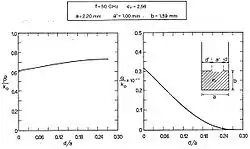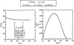 The stub and main guides are no longer the same, so their wavenumbers and characteristic admittances are also different. Again,α can be varied by changing the slot location d, as it is apparent in Fig.8. However, it was found that a' is also a good parameter to change for this purpose, as shown in Fig.9.