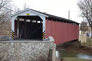The Leaman's Place Covered Bridge is a covered bridge that spans Pequea Creek in Lancaster County, Pennsylvania, United States. A county-owned and maintained bridge, its official designation is the Pequea #4 Bridge.[1] The bridge is also known as Eshelman's Mill Covered Bridge and Paradise Bridge.