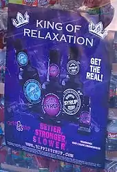 Several legal commercial products loosely based on the concept of "purple drank" are marketed in the United States. In June 2008, Innovative Beverage Group, a Houston, Texas-based company, released a beverage called "Drank". The commercial product contains no codeine or promethazine, but claims to "Slow Your Roll" with a combination of herbal ingredients such as valerian root and rose hips as well as the hormone melatonin.[42][43] Similar "anti-energy" or relaxation drinks on the commercial market use the names "Purple Stuff", "Sippin Syrup", and "Lean".[44][45][46]