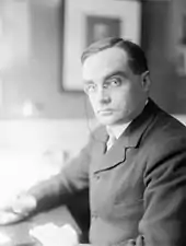 Hand was politically active in the cause of New Nationalism.[64] With reservations, in 1911 he supported Theodore Roosevelt's return to national politics. He approved of the ex-president's plans to legislate on behalf of the underprivileged and to control corporations, as well as of his campaign against the abuse of judicial power.[65] Hand sought to influence Roosevelt's views on these subjects, both in person and in print, and wrote articles for Roosevelt's magazine, The Outlook.[66] His hopes of swaying Roosevelt were often dashed. Roosevelt's poor grasp of legal issues particularly exasperated Hand.[67]
