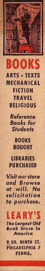 Leary's Book Store was a landmark in downtown Philadelphia, Pennsylvania, for nearly one hundred years. In 1969, when it closed, it was known as the “oldest book store in the United States.”