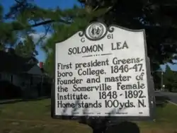 Famous former residents of Leasburg include Solomon Lea, the son of William Lea and the first president of Greensboro College, and Jacob Thompson, who served under President James Buchanan as Secretary of the Interior. Leasburg was also the birthplace of the short-lived Piedmont blues musician, Carolina Slim.[1]