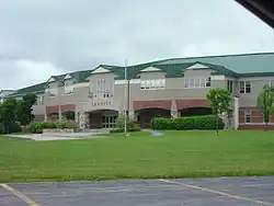 The school takes its name from an 1895 gift by James Madison Leavitt, a Turner native who became a wealthy New York City manufacturer of umbrellas and parasols.[2] Leavitt donated $10,000 to the town of Turner to build a preparatory school.[3] The school opened on Jan. 20, 1897, and was dedicated to Leavitt. In 1899 the first class of eight students graduated.[4]
