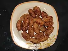 - Kibbeh is a filled bulgur dough made with ground meat and can be made in different forms including fried (kibbeh raas), uncooked (kibbeh nayyeh), baked (kibbeh bil-saneeya), and all may be served with yogurt.[96][97][98] Some regional versions of kibbeh are a pumpkin-flavoured kebbe lakteen (popular in Beit Mery) and kebbe zghartweih which is an oven-cooked version popular in Ehden.[99][100]