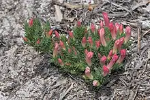 Lechenaultia tubiflora, commonly known as heath leschenaultia,[2] is a species of flowering plant in the family Goodeniaceae and is endemic to the south-west of Western Australia. It is a hemispherical subshrub or more or less erect perennial with crowded, narrow, rigid leaves and variably-coloured, tube-shaped flowers.