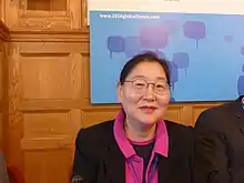 Lee Jung-ok (Korean: 이정옥; Hanja: 李貞玉; born 1955) is a South Korean professor of sociology at Catholic University of Daegu previously served as Minister of Gender Equality and Family[1] under President Moon Jae-in from 2019 to 2020.