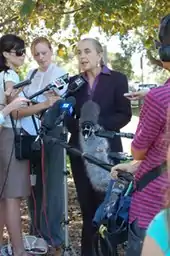 From 1980 to 1982, she was a member of the Women's Advisory Council to the NSW government, and in the same period was the NSW secretary of the Union of Australian Women.[4] She attended the World Congress of Women in Moscow in 1987.[10] In the 1980s, she was also a journalist "for unions including the Maritime Union of Australia".[11] She founded the Coalition for Gun Control in 1988 and AID/WATCH in 1993.[12] She joined the Greens in 1990.[5] In the 1990s, she worked at the Rainforest Information Centre, campaigning against the logging of tropical forest.[10]