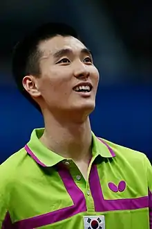 Lee Sang-su (born 13 August 1990) is a South Korean table tennis player.[3] He won two singles titles at the ITTF Pro Tour, the first one was in 2010.[4] He reached semifinals in singles event at the 2017 World Championships.