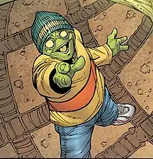 Leech and Artie Maddicks were invited to Franklin Richards's birthday, and as a gift, Franklin invited them to live with the Fantastic Four.[15] The two are now in a special class with intelligent moloids, Alex Power (Zero-G) of the Power Pack and other gifted kids.[16] It is later revealed that Leech's cancelling powers were the reason that Reed Richards wanted him to be with Franklin.[17] Leech later joins Reed's new Future Foundation superhero team.
