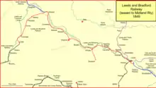 The Leeds and Bradford Railway met for the last time on 4 June 1851, to approve the transfer of their Company to the Midland Railway; the motion was passed unanimously.[1] The L&BR was absorbed by the Midland Railway by Act of 24 July 1851.[23][24]