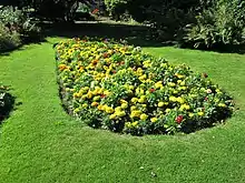 Brough Park lies immediately north of the town centre. There is formal landscaping, paths, a variety of trees and a lake.[38] The park originated in 1913 when W. S. Brough, a local businessman, gave 10½ acres of his Ball Haye Hall estate to Leek Urban District Council (LUDC); a further 8½ acres was given in 1921 by Joseph Tatton, and the park was opened in 1924. There were tennis courts and a bandstand; a bowling green was opened in 1923, and swimming baths were opened in 1975.[39]