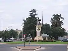 In 1913 when the Water Conservation and Irrigation Commission of New South Wales was formed, Leeton was a canvas town, with the only houses being on farms built by settlers or the Commission-built homes for officers.[15] The first block of land wasn't sold in the town until 3 April 1913. During 1913, a Kurrajong tree (later known as Pioneers' Tree), was planted as a central feature on the eponymous Kurrajong Avenue, and a butter factory was established in the town.[16] In August of the same year, Walter Burley Griffin visited the town to complete its design.[13][17]