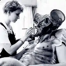 After wrapping his work with Carpenter, Bottin met with Scott to reduce the thousands of creatures suggested by the script to a manageable quantity. The process would involve complicated prosthetic makeup that would be worn for up to 60 days with some full body prosthetics.[26] According to Bottin, at the time, Legend had the largest makeup crew ever dedicated to one project. Bottin divided his facility into different shops in order to cover the immense workload. As actors were cast, Bottin and his crew began making life casts and designed characters on drafting paper laid over sketches of the actors' faces.[26] He designed the prosthetics in his Los Angeles studio and spent some time in England occasionally helping with the application of makeup.[27]
