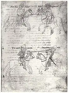 The historical Dietrich poems in Middle High German consist of Dietrichs Flucht, Die Rabenschlacht, and Alpharts Tod, with the fragmentary poem Dietrich und Wenezlan as a possible fourth.[32] These poems center around Dietrich's enmity with his wicked uncle Ermenrich, who wishes to dispose Dietrich of his father's kingdom. All involve Dietrich's flight from Ermenrich and exile at Etzel's court except Alpharts Tod, which takes place before Dietrich's expulsion, and all involve his battles against Ermenrich, except for Dietrich und Wenezlan, in which he fights against Wenezlan of Poland. All four postdate Dietrich's appearance in the Nibelungenlied.[33] They are called historical because they concern war rather than adventure, and are seen as containing a warped version of Theodoric's life.[34] Given the combination of elements also found in these texts with historical events in some chronicles, and the vehement denunciation of the saga by learned chroniclers, it is possible that these texts ― or the oral tradition behind them — were themselves considered historical.[35][36]